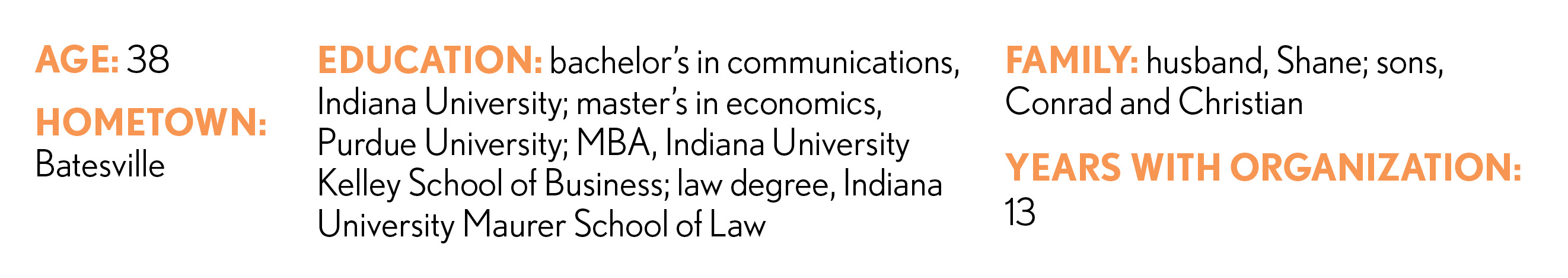 Givebacks: “Honestly, I feel like my career is both a career and my way to give back to the community through affordable housing,” she says. But she does serve on a few boards, including Riley Hospital for Children, which she says is her favorite.