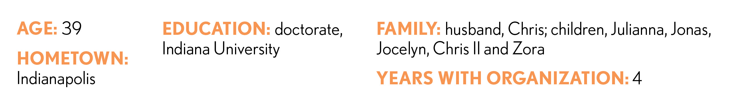 Givebacks: She is a member of the Indianapolis Public Schools board. During her tenure, voters approved a $410 million referendum, and high school graduation rates have continued to increase. Her leadership of a board committee led to 10 policy changes to reflect the board’s commitment to equity.