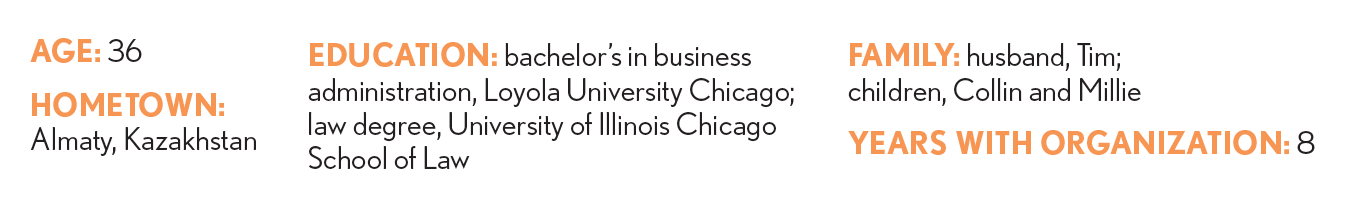 Givebacks: Volunteer attorney for Indiana Legal Services, Indianapolis Legal Aid Society, Pro Bono Indiana, National Immigrant Justice Center; member of the pro bono outreach committee for the Indianapolis Bar Association. “Access to legal services can change lives, and I have made it a mission to connect our attorneys with individuals who need critical legal support,” she said. “Giving back in this way reinforces why I chose this profession in the first place: to use my skills to create positive change.”