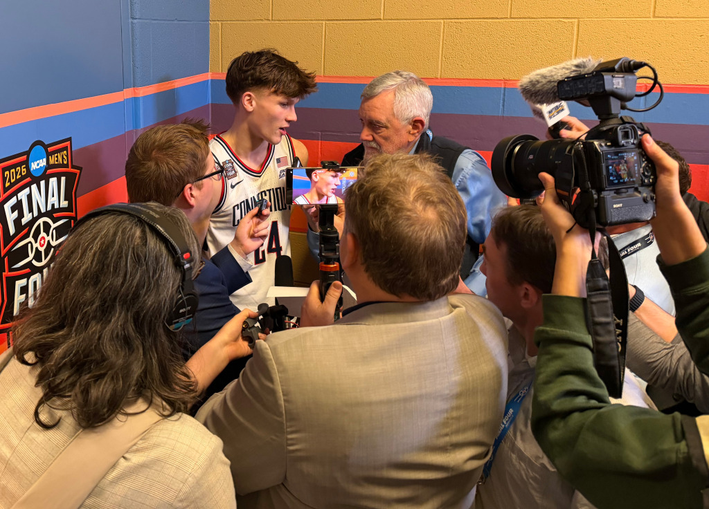 Five feet away from where Braylon Mullins was answering the same questions over and over before a rotating mass of media members, Jayden Ross sat alone in front of his stall in the University Connecticut locker room. He hosted Mullins on his recruiting visit, so he’s seen him from the beginning of his college career. Before the beginning, actually.