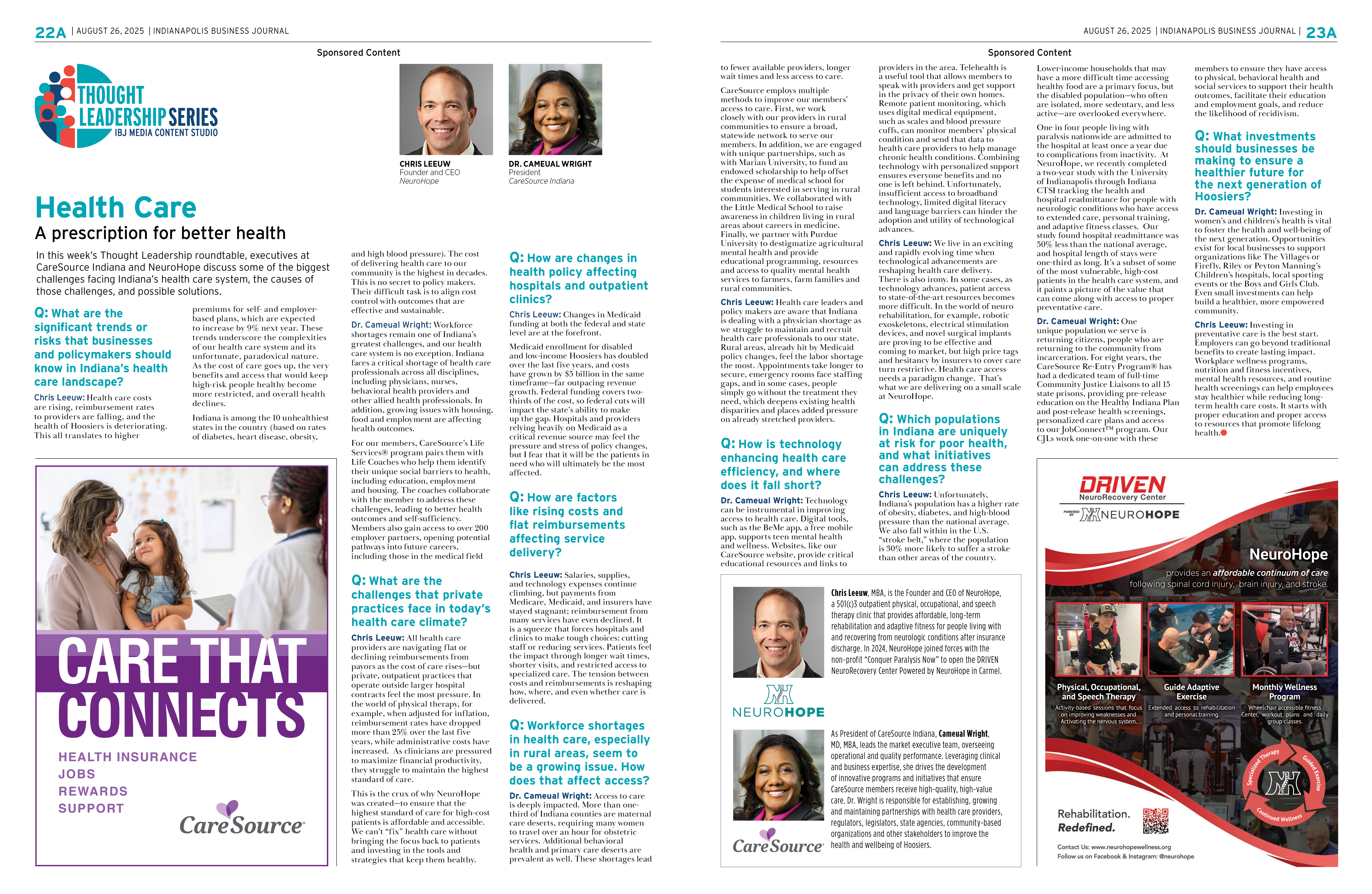 In this week’s Thought Leadership roundtable, executives at CareSource Indiana and NeuroHope discuss some of the biggest challenges facing Indiana’s health care system, the causes of those challenges, and possible solutions.
