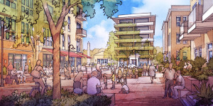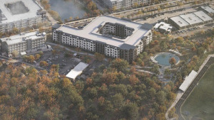Plans call for a five-story building with 210 age-restricted apartments, 12,000 square feet of amenity space, a 356-space parking garage and a 1.54-acre park and trail dedicated to veterans of the United States military.