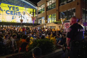 More than 10,000 people claimed free tickets to Thursday night’s watch party, which lacked opportunities for full-throated sports bedlam among Pacers’ faithful.